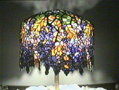 This is a Tiffany Wisteria Stained Glass Lamp Replica I completed on December 8th, 1994. It is comprised of over 2200 pieces of glass and took me 3.5 years to complete. Original Wisteria's sell for $100,000 to $500,000 if you can find one. A replica like this can fetch $10,000 to $20,000. Yes, I am very glad this project is finished! Note: The lamp is pictured with a base I welded together. A replica of the original base is being ordered.
