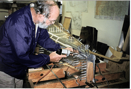 The fuselage is being built on a wooden jig. It is actually constructed