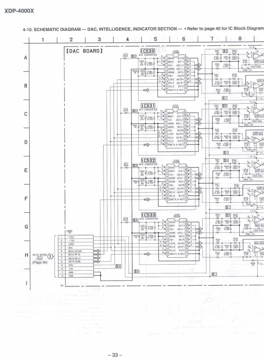 Revision 1 XDP-4000X - Main Board Part Number: 1-671-416-11 Revision 2 XDP-4000X - Main Board Part Number: 1-671-416-13 Revision 1 XDP-4000X - DAC Board Part Number: 1-671-417-11 Revision 2 XDP-4000X - DAC Board Part Number: 1-671-417-13 Revision 1 XDP-4000X - Indicator Board Part Number: 1-671-415-11 Revision 2 XDP-4000X - Indicator Board Part Number: 1-671-415-13 Each bitmap below is scanned at 150 DPI which should print nicely on a single sheet of 8.5" x 11" paper. You will have to use some appication like MS Paint to print them, however, as web browser's convert the image to 75 DPI and the image won't fit on a single page (and the resolution will be poor). You can click on each page below, or download the ZIP file that contains all of the images.