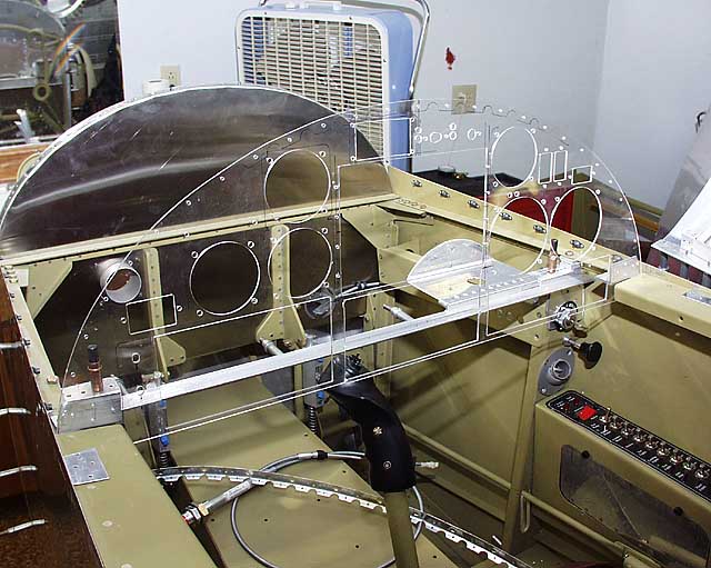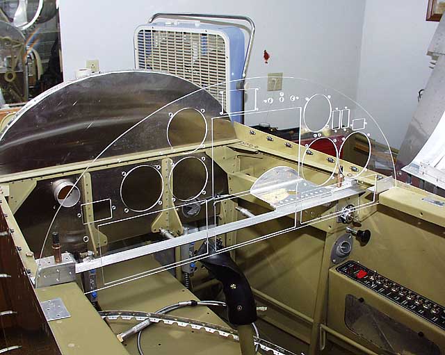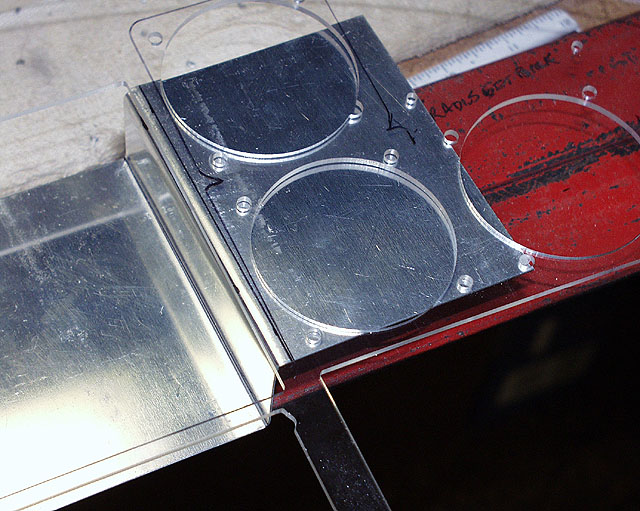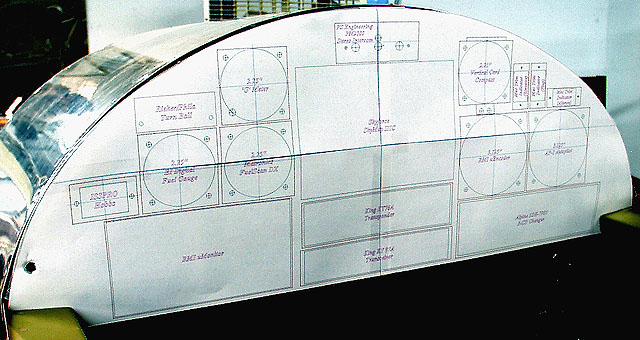 Because the Plexiglas panel mockup is clear, it allows for easy alignment and design of the necessary support brackets for the various radios and instruments that don't directly mount to the panel with screws. This is my third panel for this RV-4, and I can without a doubt say that using this Plexiglas mockup method is far easier and more importantly, substantially more accurate. Best of all, the holes are all perfectly round or square and match the instruments perfectly. And the screw holes for the round instruments match up beautifully!