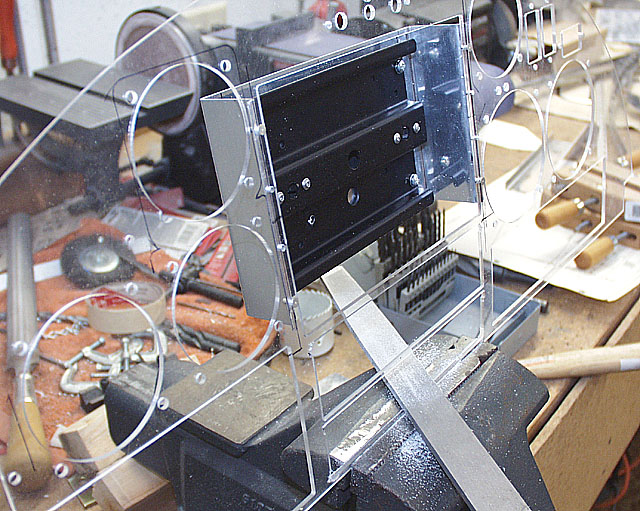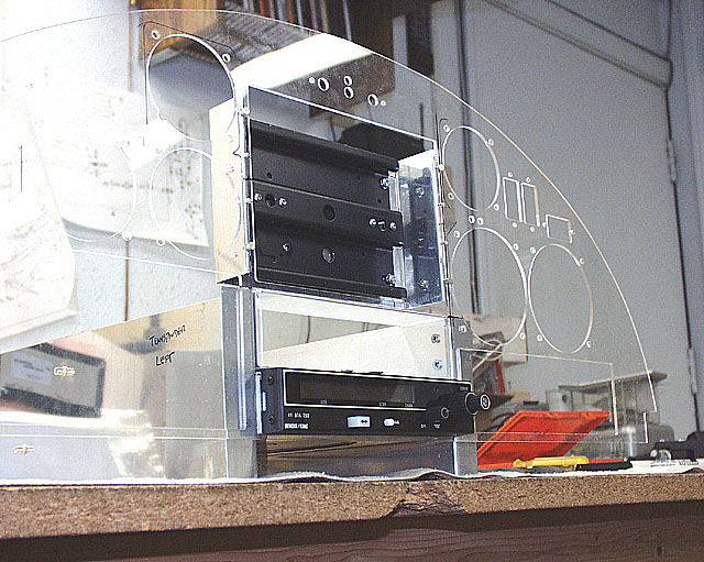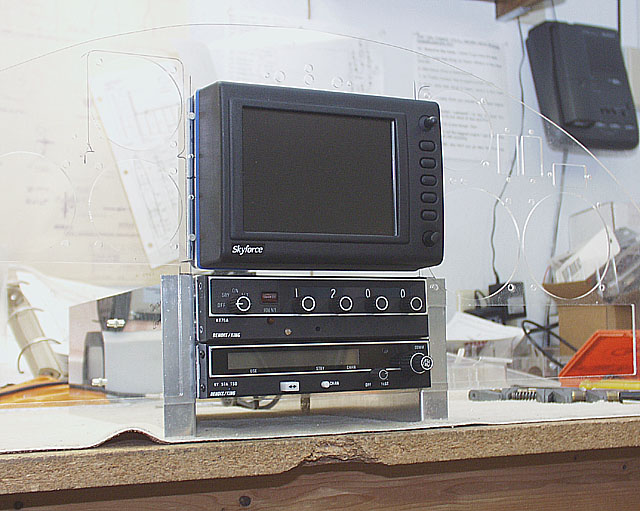 Now its time for the first big test. How does everything fit? Nearly perfect, actually. The only problem I had was with the Transponder as it has a number of 4-40 screws on the bottom that I didn't account for in my dimensional mesaurements. I used a rat-tailed file and made a few 'adjustments' to the Plexiglas, and I was on my way.
