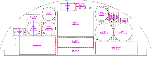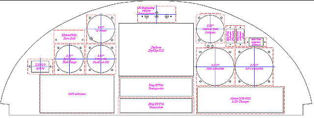 I found that I had put the Transponder and Transceiver a little too close together and that the holes for each were a little short because I hadn't accounted for the flanges on the trays sticking through the panel. With the Plexiglas mockup, it was easy to see just what needed to be enlarged and it was then easily filed out to the proper size. Any changes to the Plexiglas mock up are noted on the CAD program for Mockup #2 later.