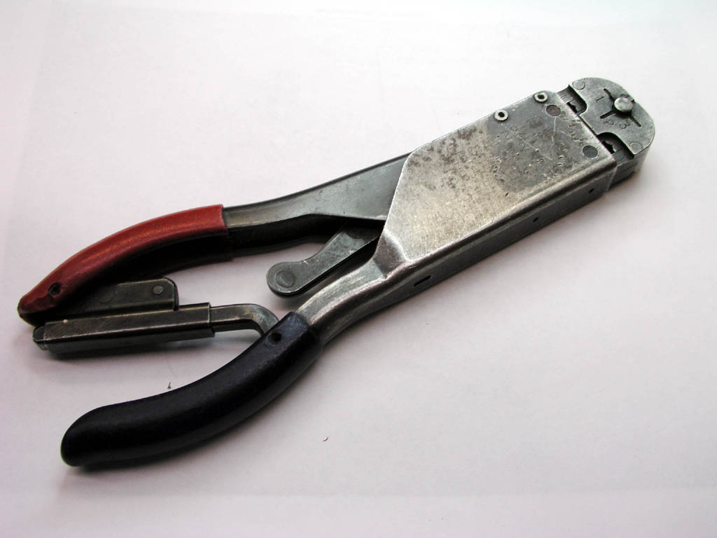 for the installation of top-of-the-line terminals on wires. The tool pictured on the left is an Asian knockoff of a family of relatively low cost tools made in the US for terminal installation. It has ratchet controlled handles that force the tool to be cycled through a full stroke against hard stops so that uniformity of crimp height is guaranteed. This tool sells from B&C's website catalog for about $40. The tool pictured on the right is the Amp "t-head" tool for red (16-22AWG) and blue (14-16AWG) terminals. I purchased this tool at Cessna salvage about 1965 for $20 as I recall. I sent it back to AMP for refurbishment at a cost of $75. At that time, I think the tool sold new for about $150. Today, it's about $600.
