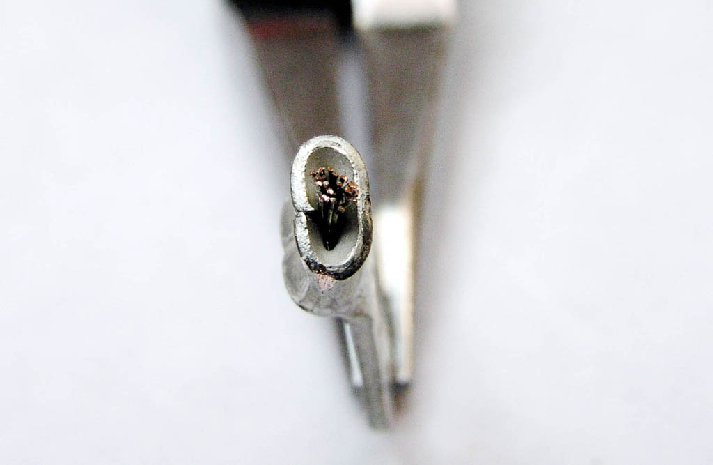 the very neat closure of metal down around the wire. Note that