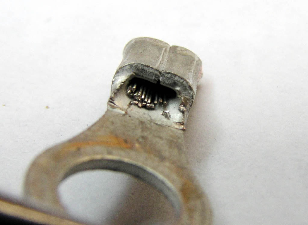 for insulation support. Okay, the crimp on the left is UGLY . . . but is it functional? |