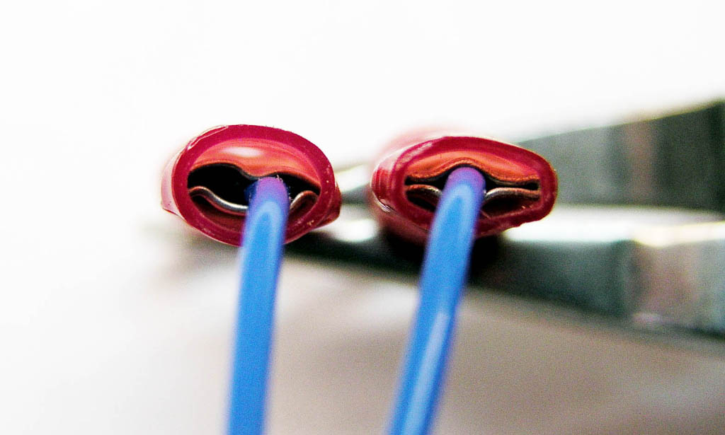Let's begin with a couple of red PIDG terminals attached to a piece