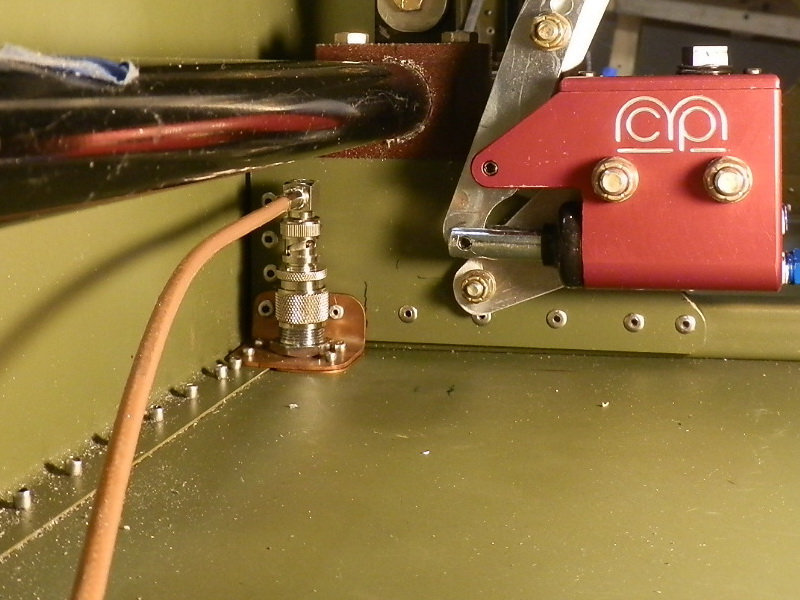 Thought I'd post a followup from a few months ago when I was making my com antenna. See http://forums.matronics.com/viewtopic.php?t=85809 In short, it's a RadioShack CB antenna that I cut short. This allowed me to screw in the threaded post into the female-female coupler, which I threaded onto the UHF antenna connector I got off ebay, which is also shown in the original post. It came with a white plastic shoulder washer that insulates the antenna from the airframe. So far all this is on the outside.