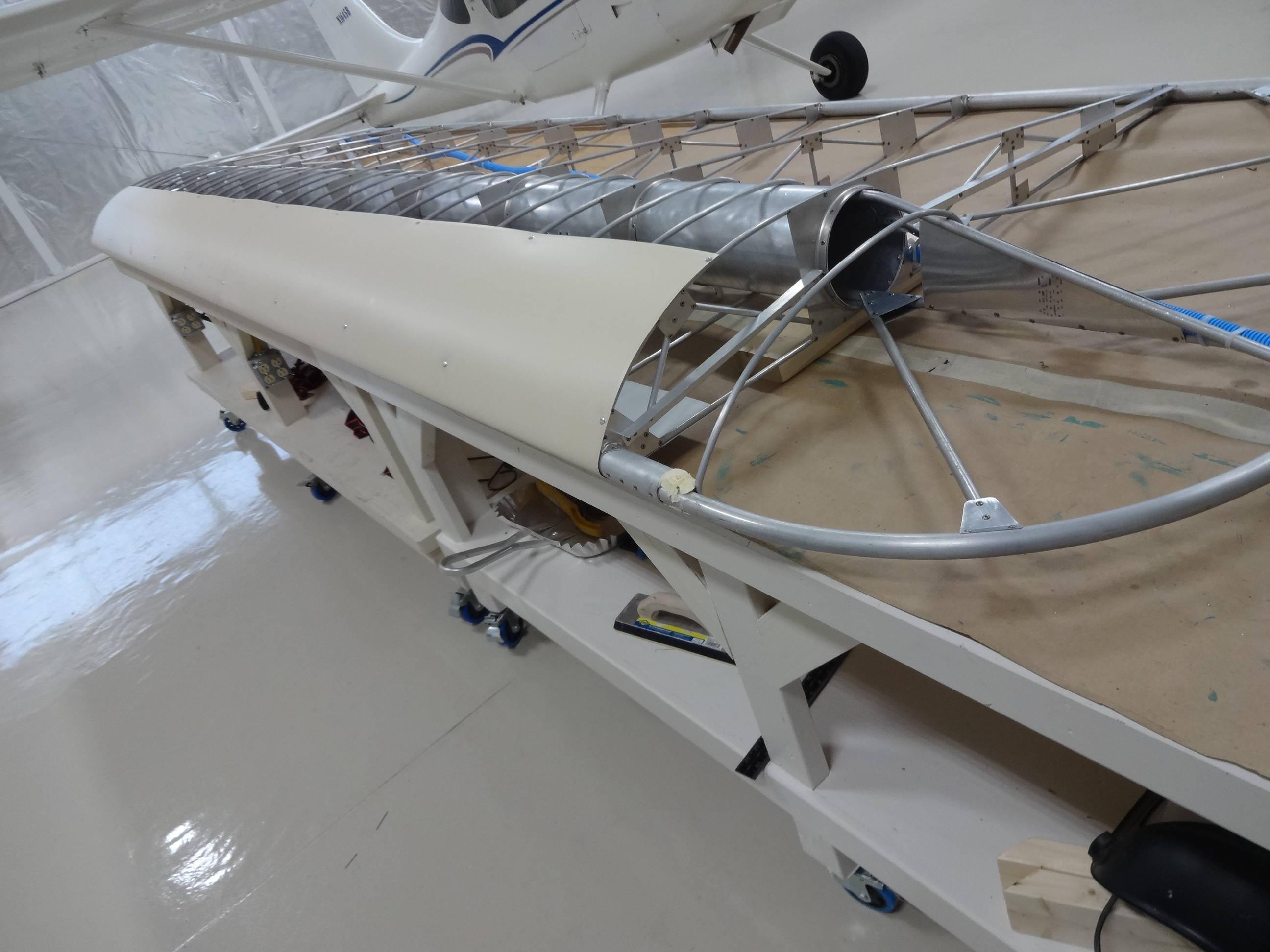 The wing also gets very rigid when the fabric is cemented on, shrunk, and