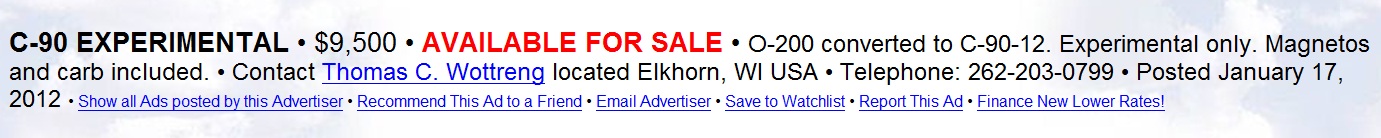 For those in the market for such an animal (O-200 converted to C-90),