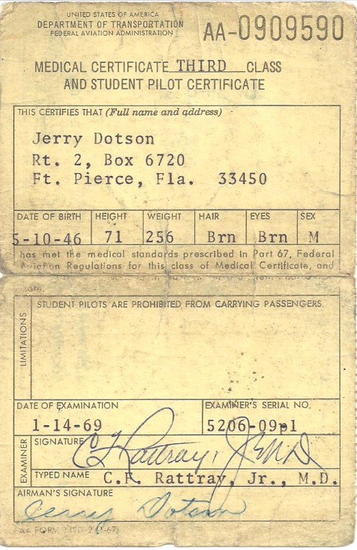 > Here is a copy of my first 3rd class medical and sign-offs. It appears the