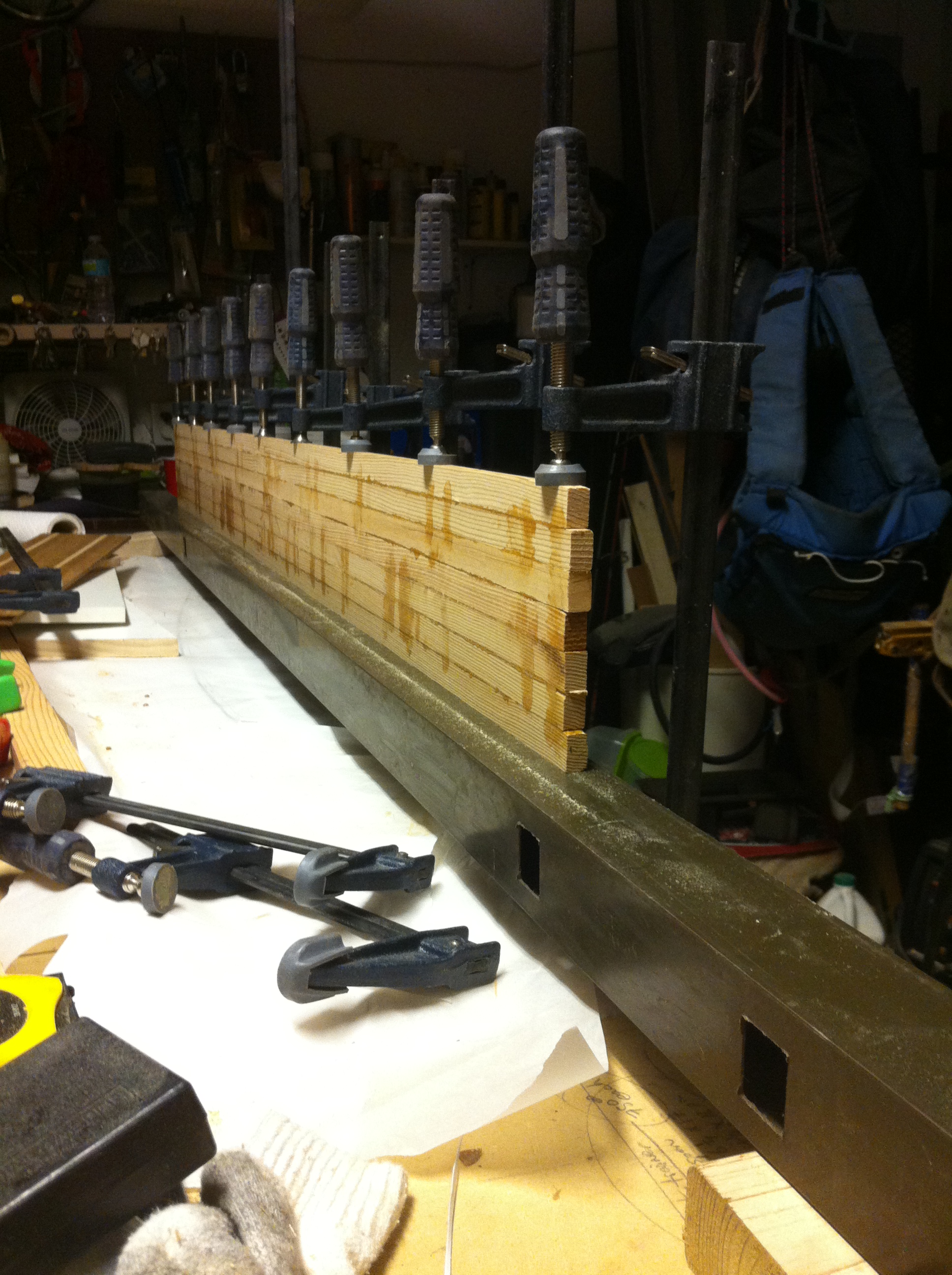 each side and lastly epoxied rails to make an I beam of 1inch wide along the