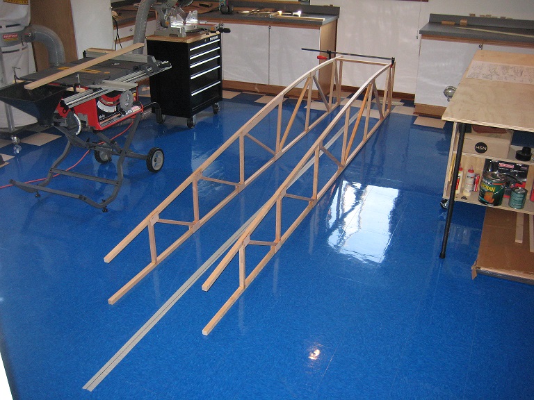 > fuselage sides upside down; the flat longerons on the floor and worked