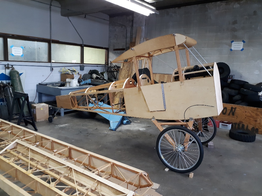 > The fuselage is varnished and it is officially sitting on its landing gear.
