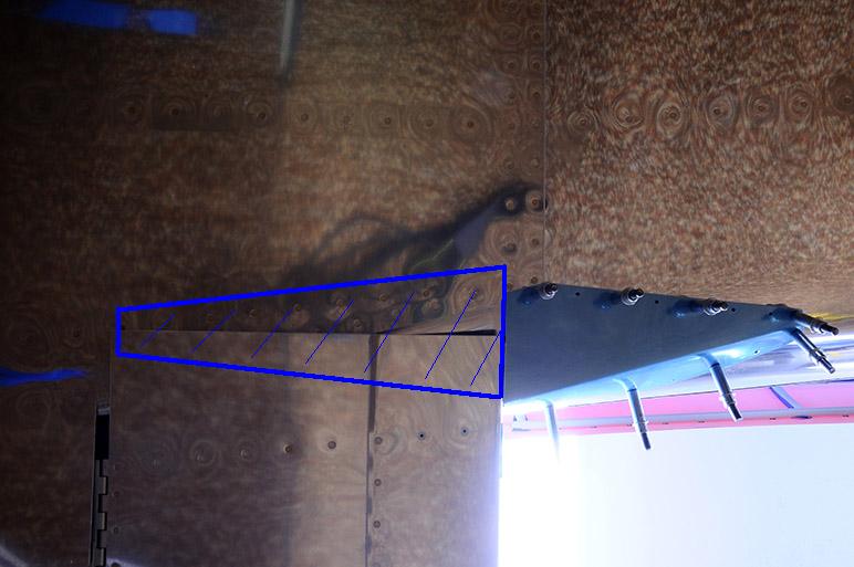 >to cut the bottom flap skin to match the diagonal of the fuselage skin per the
