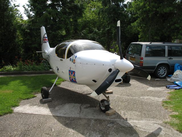Subject: G-PTAG Kit 337 Europa - Fuselage Conversion Description: Herewith photo of completed fuselage conversion of G-PTAG Kit 337 Europa with Woodcomp SR3000 Propeller and Rotax 914 c/w intake pre-cooler.