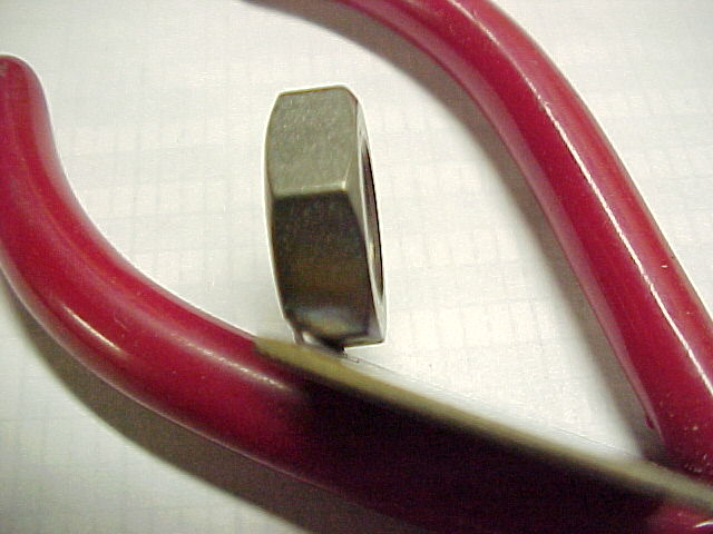 Subject: Manual trim cable mount Description: This is the part that mounts the manual trim cable sheath to the inside of the elevator. It came with my manual trim kit for my RV-9A. The description in the pick list indicates it is also used on the 4 and 6. I expect it is also used on the 7. Not sure about the 8. You can see where it is welded only on one corner of the nut. If this breaks, you will lose control of the pitch trim. This reportedly has happened inflight in at least one case.