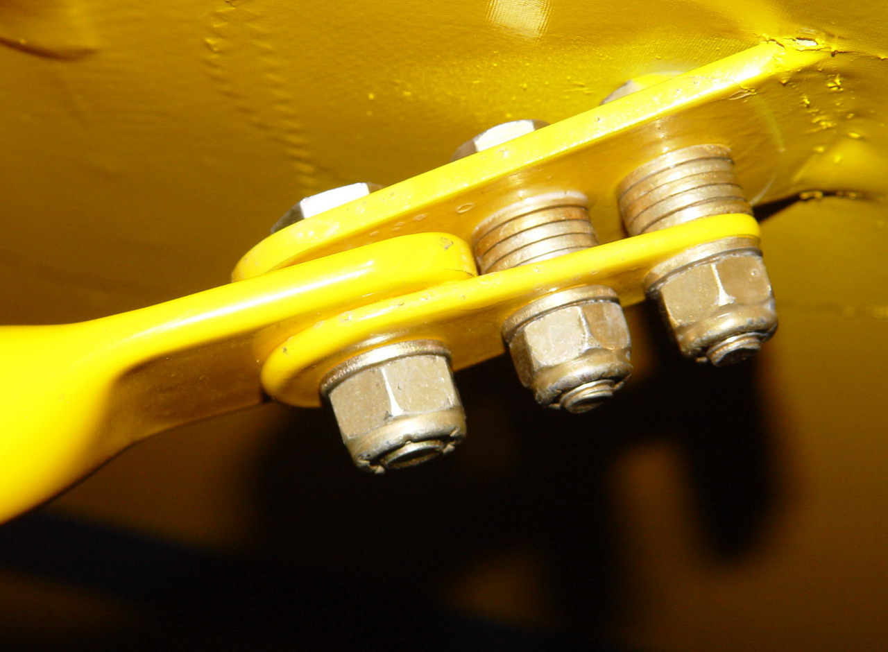 To help this, I have gone to NAS hardware which is about 20 % stronger than AN hardware, and I am using a bolt and nut, so that if it does bend, one end will not pull out. I will be drilling that out and going to a bigger diameter bolt there just to be sure. I would also like to drill out and go one size bigger bolts on the strut ends, but it it might remove to much material from the ends and cause weakness in the 4130 metal of the wing strut end, so I will not. These have much less bending moment, so are not as likely to fail as the center section as can be seen in the pictures below. Larry had a good idea of putting a spacer in the lower attach point pin to keep the stress to one side of it. That will put almost all the stress on one side of the fitting, but will keep that bolt stressed in sheer instead of bending force. I will use a bunch of washers to do this. I will also be careful to make sure I do not put to many in so that it does not cause this fitting!