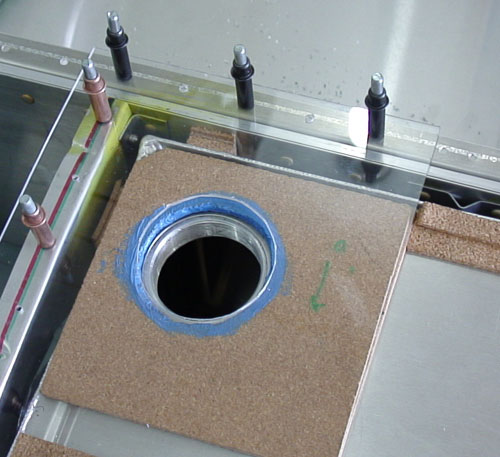 | Cork sheet used to support skin around fuel filler hole - glued together with contact adhesive. |