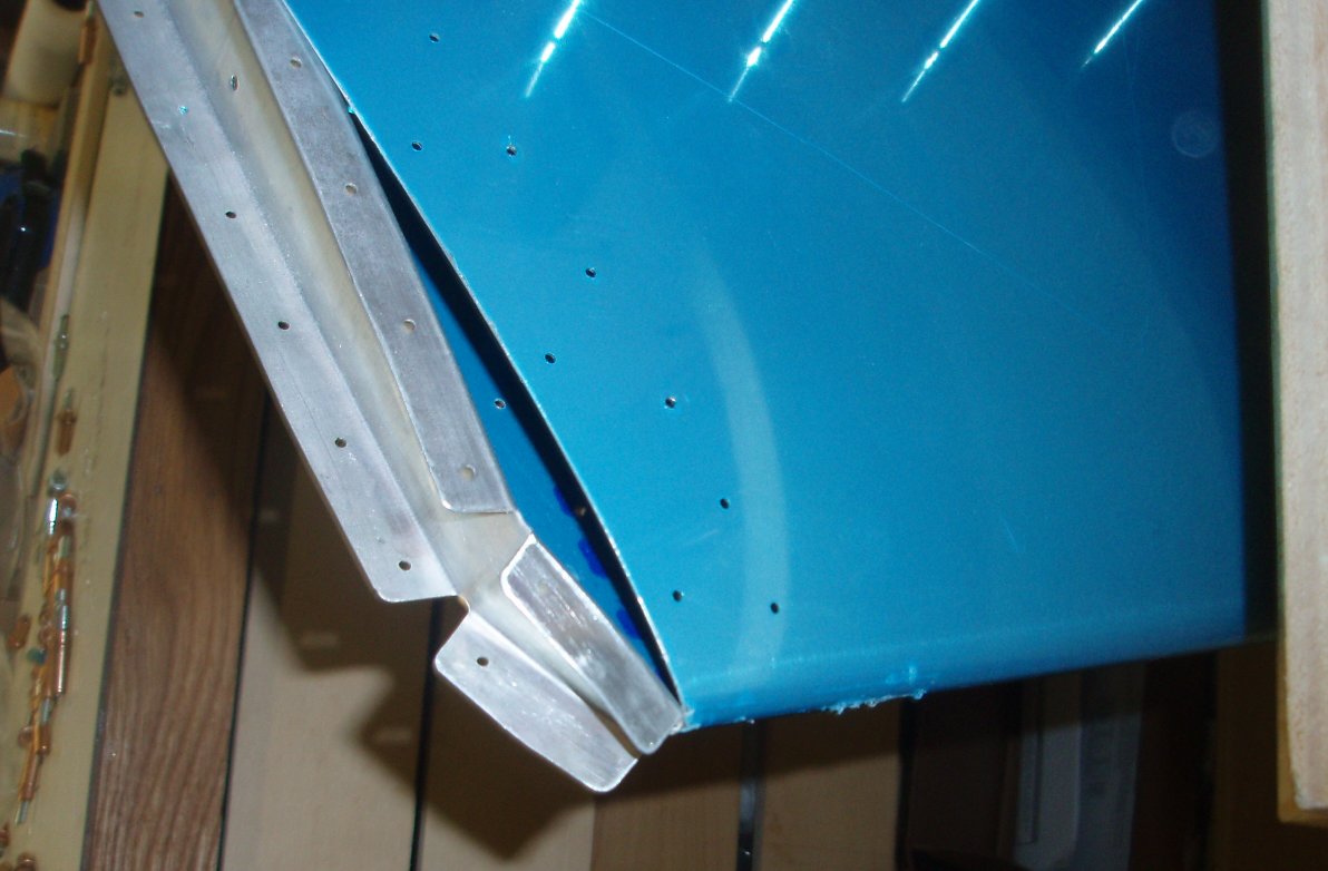 In the other picture, I have forced the rib inside the skin, and clecoed it