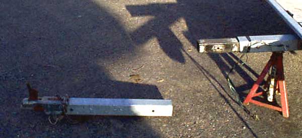 Extended tow arm in place. Note the platform (2X6) for the tail wheel to roll in while loading/unloading.