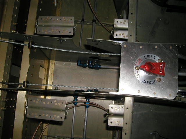 If you click on "Next Picture" from the below link you will see the plumbing for the fuel transfer pumps that attach those second 1/4" fittings. These pumps will transfer fuel from the wings tanks to a main tank behind the baggage bulkhead to maintain preset levels of 3, 5 or 8 gallons. Under "normal" conditions engine is fed from this main tank. If the pumps or electric should fail, I would revert to manual tank switching.