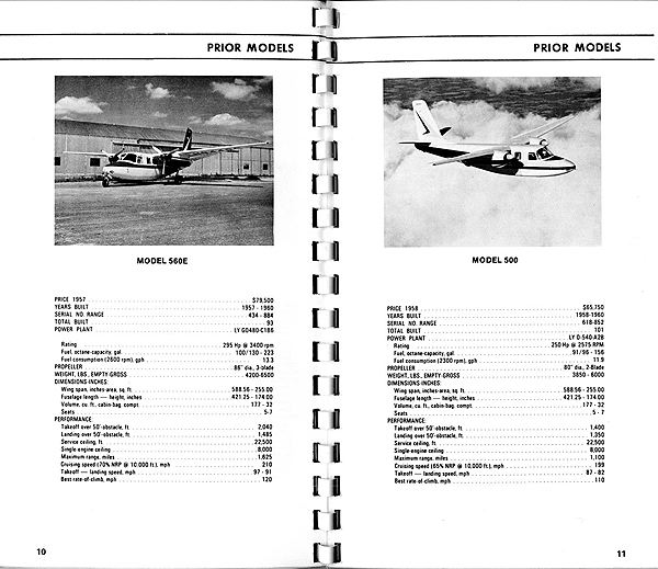 I have a copy of a small pamphlet titled "Sales Data Handbook" (would fit in a shirt pocket) that lists all the Aero Commander models from the 100, Darter-100, 200 (looks like a Meyers) AG-B-1A Snipe (radial) up through the 1121 Jet Commander. I got it from a fellow Commander owner Charley Williamson -who owned a 520 at the time, based out of Pontiac, Michigan. Charley helped me ferry my bird from Tecumseh, MI in '89 to Pontiac where I got it airworthy again. For whatever reason Charley had a bunch of these loose in a box (I should have snagged more). I haven't seen Charley in years but I believe Charley has passed on; I saw his 520 in Howell, MI a few years back on the tie down ramp.