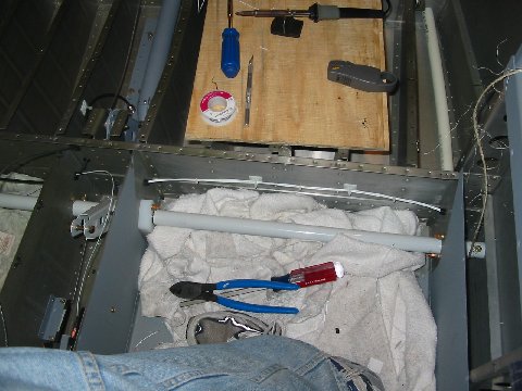 Whoops, my mistake, I thought you could see the POS-12 in those posted pictures. Here are some photos of my POS-12 installation. I attached it to the inside of the tunnel near the flap actuator using blind rivets. I made a connection using model airplane a threaded pushrod with a z-bend at one end an a brass clevis at the other. I had to measure carefully/experiment a bit to select the appropriate attachment points and mounting angle to get the right throw and to avoid binding.