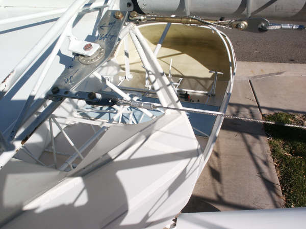 Enclosed find a few photos of my latest modification. I might add this system is ROCK SOLID!! There is NO slack, the ailerons move effortlessly, and they still retain the quick disconnect ability, for folding wings. All parts were designed and custom built by me. I used authentic aircraft bellcrank bearings, cable pulleys, cables, turnbuckles, and 6061 T6 aluminum. The fact is, this is a simple design, and could have quite easily been an original system in the first place. The main thing is, I still can swings the wings, same as before.