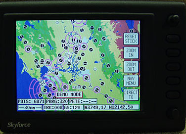 I am selling my new-in-box Skyforce Skymap IIIC full color GPS moving map with Topo. The database and firmware were just upgraded 05/2008. Includes a Panel Mounting bracket, GPS Antenna, cigarette lighter adapter, carrying case, and all manuals. Brand new, never used. No scratches. The pictures below are of the actual unit. The LCD color display on the IIIC is extremely nice and very bright. Gives altitude readout. RS232 output.