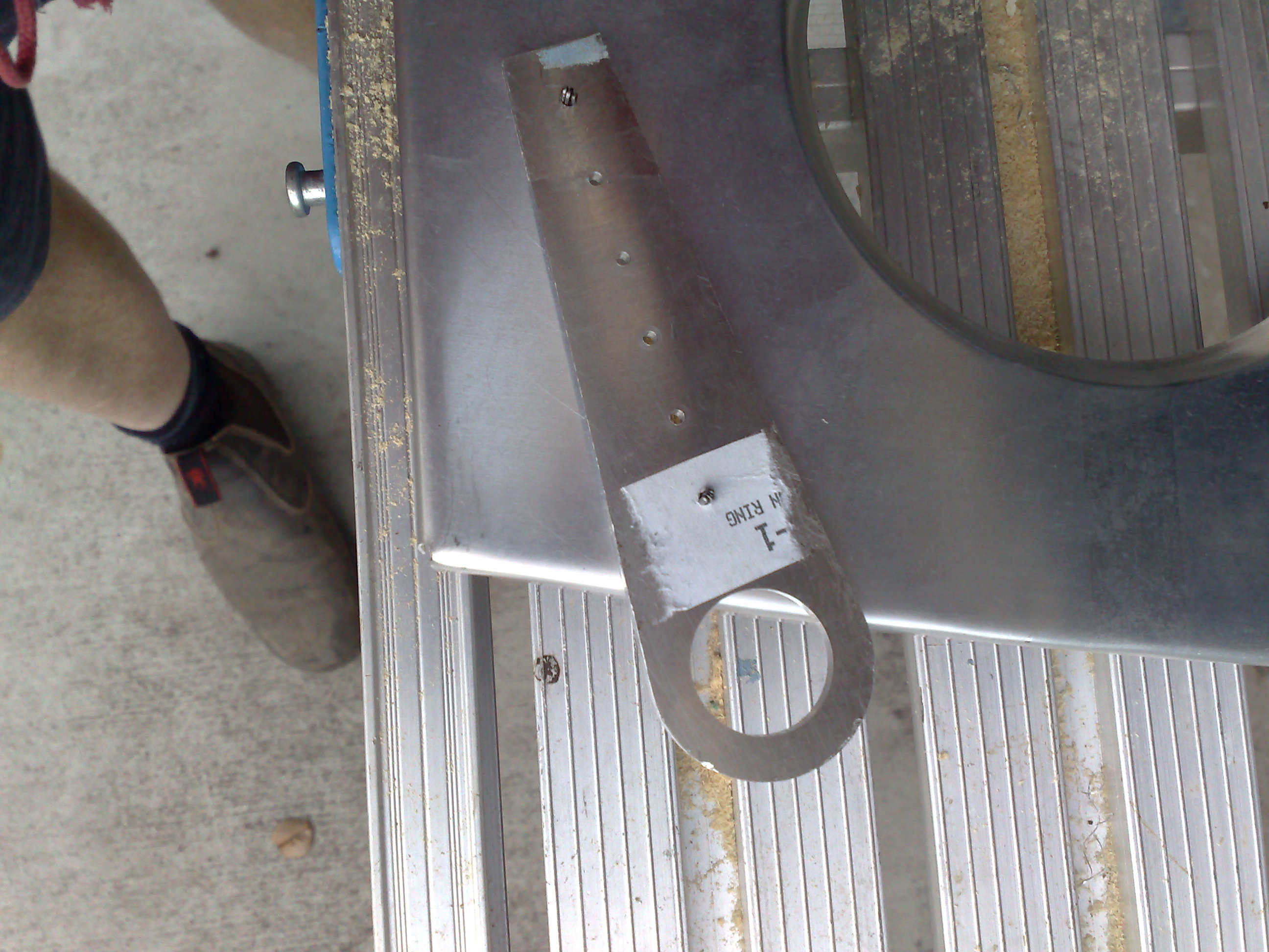 I ran into the same problem. I just moved it down one hole and put an L angle doubler behind the rib inline with the tie down holes to make up for the lost rivet. [quote][b]