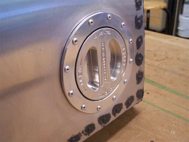 These are the welded flanges from ACS... trimmed the flange off, cut the flange level with the bottom of the tank and then had to drill the holes... lots of works.  Can be has also from VAN's VA-141, for about $20 per... I had the ACS flanges already so I used them... but next time I would buy from VAN'S.