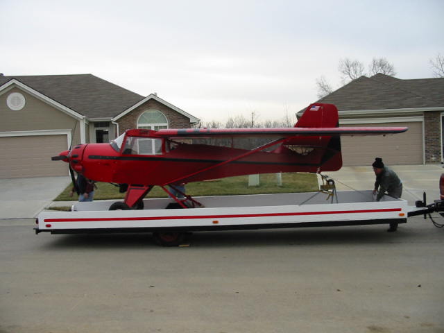 For my long journey to the new home I used a tandem axle car hauler & low pressure tires. The trailer had 4' high sides so I strapped the wings to the side with lots of padding. I strapped the fuge down and supported the tail so the wheel had no load, Then I covered the whole trailer with a trap to get rid of the air loads.