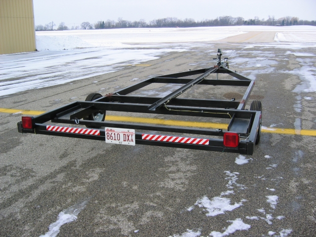Hi All, Good discussion of trailering. I modified a boat trailer also to tow my Vixen. I live about 2 miles from the airport and keep the plane mostly in my garage. I also have towed it from California and to North Idaho several times at 60-65 mpg with no problems at all. It is of course braced with the towing kit from Kitfox and is supported just in front of the makeshift tail wheel (homemade) at the tube going into the fuse. I can get the fox off and on the trailer by myself and ready to fly in about 30 minutes. The wings are at about a 10-15 degree angle, but I do tow with a pickup with a cap, so not much wind hits the wing tips. Sorry I don't have any pictures at this time, but will post some later (Plane trapped in a hangar with snow presently). Thanks for all the good discussions.