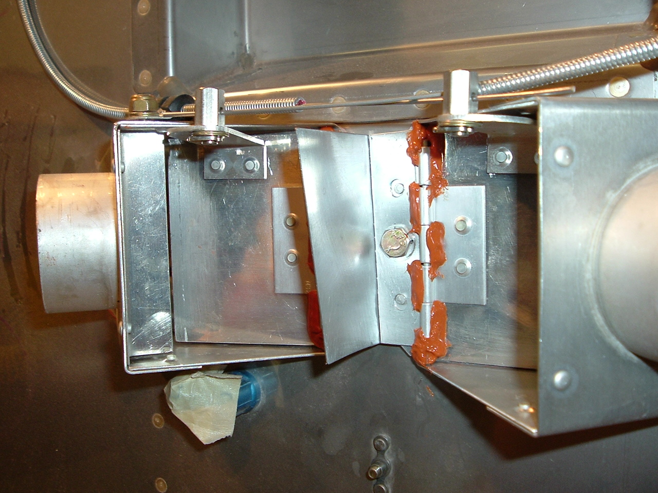 I wanted to pass on a suggestion for those looking to keep their RV 10 TUNNEL cool. Take your Black & Decker Wet vac and hook the hose to the blower/discharge air. Then place the hose over one of the heat vents on the firewall simulating hot air blowing into the cabin. Close the vents and see if air is still entering the cabin with the vents shut and the wet vac blowing air into the vent on the firewall side. What we discovered was alot of air was entering the OPPOSITE vent when both were closed. The air was coming in under the hinge on the vent door. When I placed a small aluminum divider between the air vents on the firewall the air ceased leaking into the cabin tunnel. After playing with a few DEFLECTOR designs, I used the inside mounting bolt on the vent box to hold a deflector in place and then also put an 1/8 inch deflector inside the vent box so air could not sneak under the front of the vent door. This should solve the problem with HOT air entering the Tunnel with the vents CLOSED. There still may be a Radiant heat problem but insulation on the firewall and tunnel floor and silicone between the firewall and vent box helps for Radiant heat.