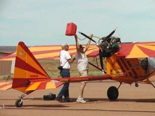 This question is really for John H., but I posted to the list for anyone else that might be interested in a simple way to transfer fuel from the can to your tank, that is also easy to stow onboard during flight with minimal weight or space penalty.