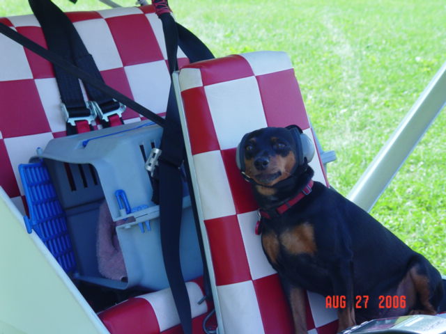 The Mutt Muffs "stayed" on her ears today....We flew to the Cherry Grove Fly-in ( I was getting 82 mph GS/ SMOOTH air ) after we landed , Taxi'd to our spot , She jumped out and ran around alittle with her sweater and ear muffs...