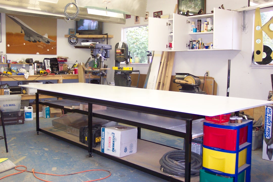 I am building my workbench frame out of 1.5" square steel tube. I plan to use some all-thread in each leg to create jackstands. The jackstands will lift the wheels off of the ground and will allow me to level the table no matter how uneven the floor. At the suggestion of Jay in Dallas, I am going to build the table low and provide enough range in the jackstands to bring it up to a normal height. It will allow me to run it high for wings and keep it low for working on the fuselage when it is in the "Boat" stage. I will post pictures in my gallery as it comes together.