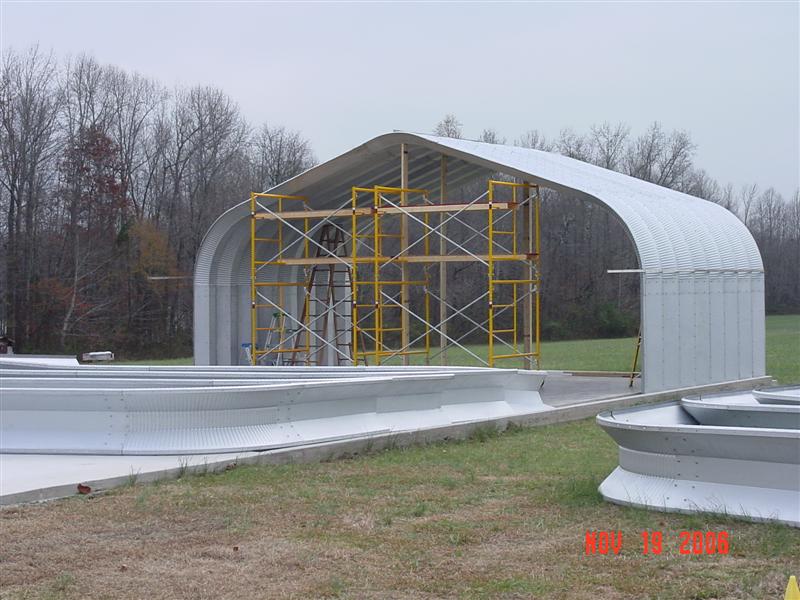 This is one of this buildings strong points, as after the grouting process the building has been rated to withstand 125 MPH winds. Its overall design is an extremely strong method of construction and very easy to assemble without the need for a professional crew (me, my dad, sisters, nieces and nephews are putting this up ourselves!). The sheet metal skin acts as the structure so there are no beams, poles or other structure needed. After building my bro in laws, I was quick to buy one for myself… but it took me 10 years to find the right place to set it up! Glad its finally going up!