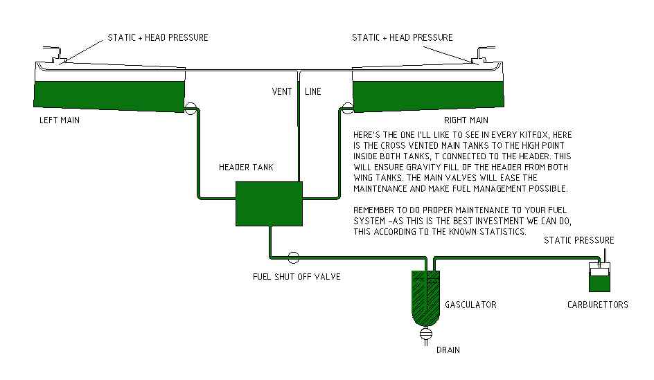 the level of the fuel tank outlet to the header tank inlet. There is