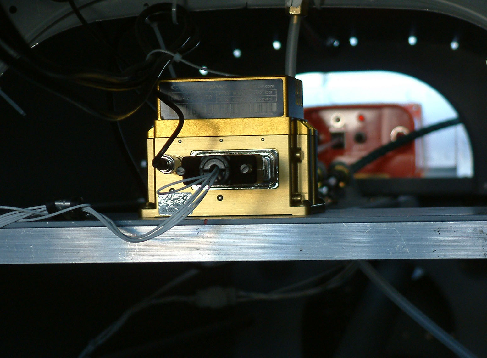 The value of setting the plate on the longerons is an immediate 2 axis alignment - pitch and roll. By running a string through the length of the cabin yaw orientation can be easily determined. All internal Xbow sensors are aligned physically and by calibration to the mounting holes. A much more difficult mounting would be some inches lower that would align with origin of the roll axis. However, the gain is small compared to the effort - and it now allows the other two axis to vary.
