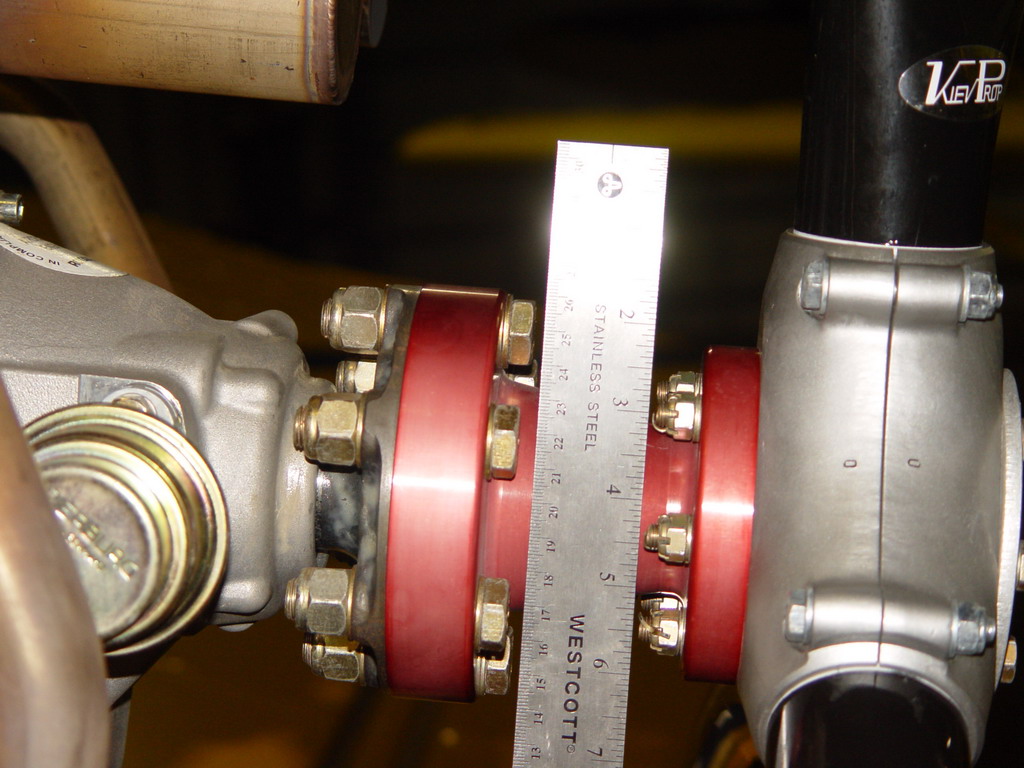 I thought the extention was needed to have proper clearance. Without one on my kolbra the prop would be vert close to the flaps. The reason for this thread was to find out what everyone is useing. I bought/made 3 before I found the one closest to what TNK sends out. The problem with the "black" one was it uses the smaller diamater bolt circle and no lugs (rotax). Daryel at warp was not happy with this combo. The one Travis sent me for comparison did not have the holes on the prop side properly sized for the lugs to be "pressed" or "pulled" into the hub. This has been a real adventure finding out what is used out there. I have seen it all however I think what we landed on is the closest to right. If there is such of thing.