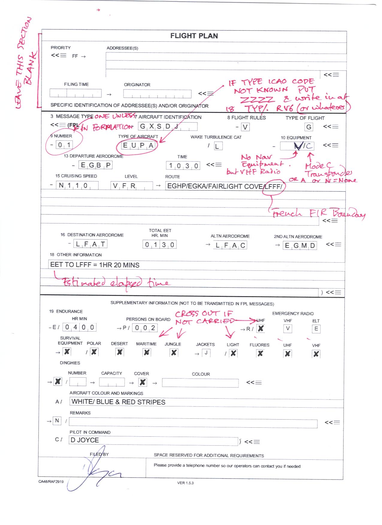 Trevor, Briefing sheet + sample flight plan attached, Regards, David