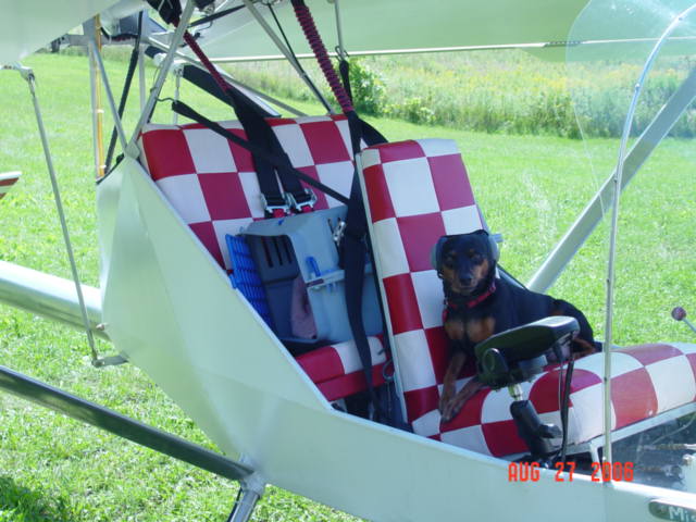 The Mutt Muffs "stayed" on her ears today....We flew to the Cherry Grove Fly-in ( I was getting 82 mph GS/ SMOOTH air ) after we landed , Taxi'd to our spot , She jumped out and ran around alittle with her sweater and ear muffs...