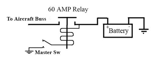 This is how I hooked up a master switch for my Kitfox. The relay is not a starter relay (it would overheat) but the type of relay used in RVs for the extra battery. Just for the the way it looked my master switch is a long toggle with a red light in it of the type they use on tractor trailers. The light draws attention to the switch which can be a good thing if things start to get real busy. The advantages of this hook up are; The high current wiring is all outside the fire wall, the switch lead can be fused at the battery and the relay completely disconnects all power form the battery when the master switch is open.