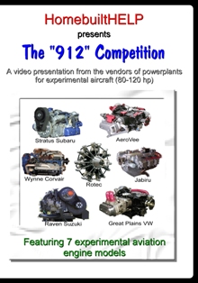 HomebuiltHelp has just released a new DVD that compiles interviews/demonstrations from 7 engine vendors that compete with the 912 class of engine (Stratus Subaru, Jabiru, Rotec radial, AeroVee, Wynne Corvair, Raven Redrive, and Great Plains VW).