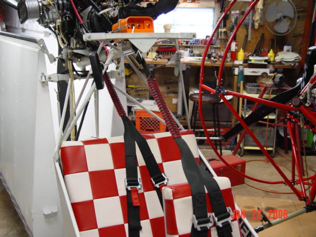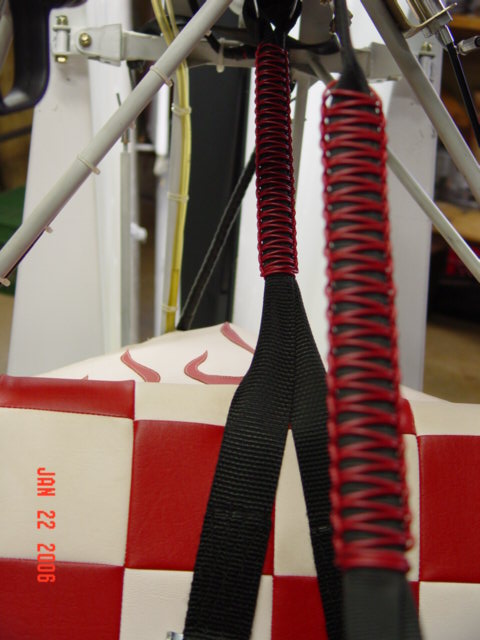 I took some elec wire, Red to match my plane...and I macreme'd the shoulder strap.....I need to leave them loose when I fly , so I can lean forward and reach the ignition ( Cessna too , but for "BOTH" fuel )
