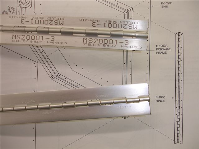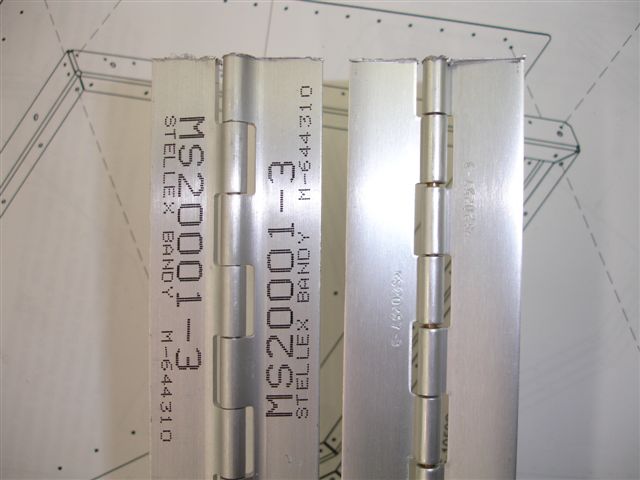 If you want less sag on your baggage door, use the extruded piano hinge instead of the one supplied in the kit. The extruded version is 4 times the cost but is much, much stronger! The supplied version in the kit has the eyelets rolled. As you can see from the pics, the extrusion has the eyelets closed.