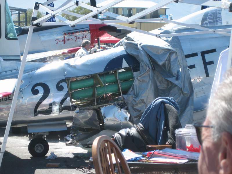 Ben mentioned the oxygen tank explosion at Reno. I was shooting video of his team's gorgeous Grumman Tigercat when I heard the big boom. The picture below shows what that does to a Mustang.