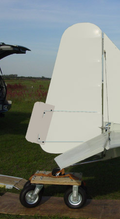 The huge rudder trim tab (12" tall and 6 3/4" wide at bottom, bent about 15 or so degrees to right as you face the cockpit, and riveted 22" down from top on the trailing edge pipe of the rudder)