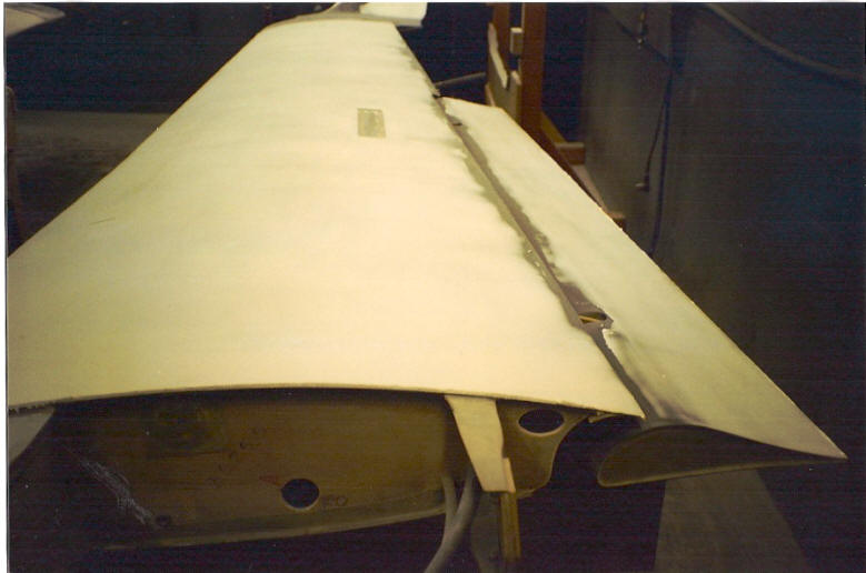 in the skin in the spar area and the joggle joint on the leading edge.